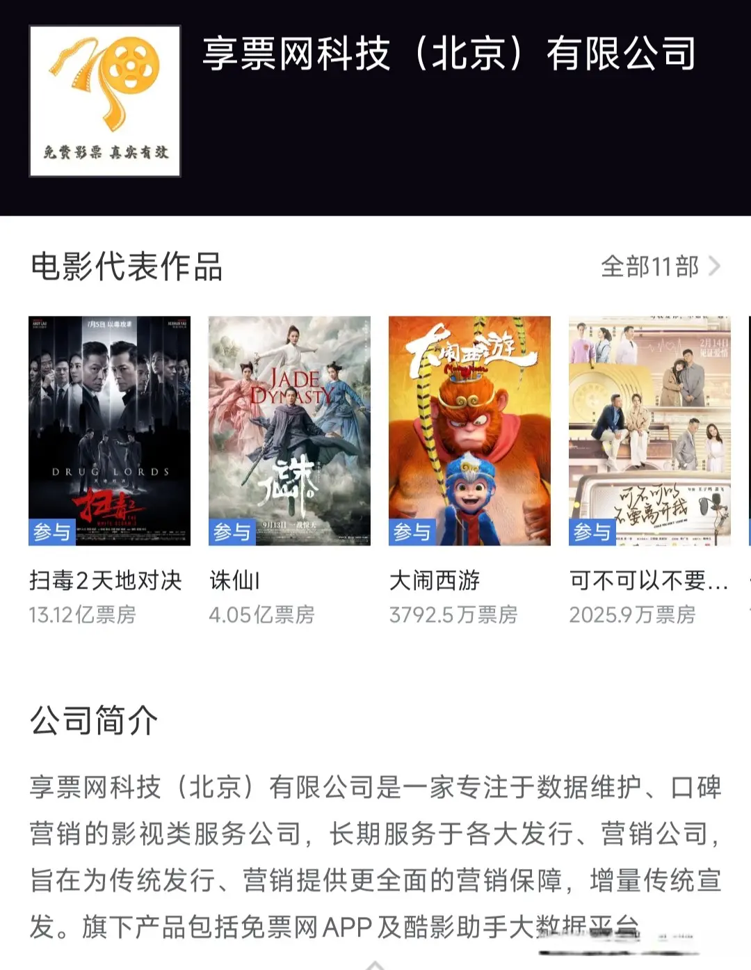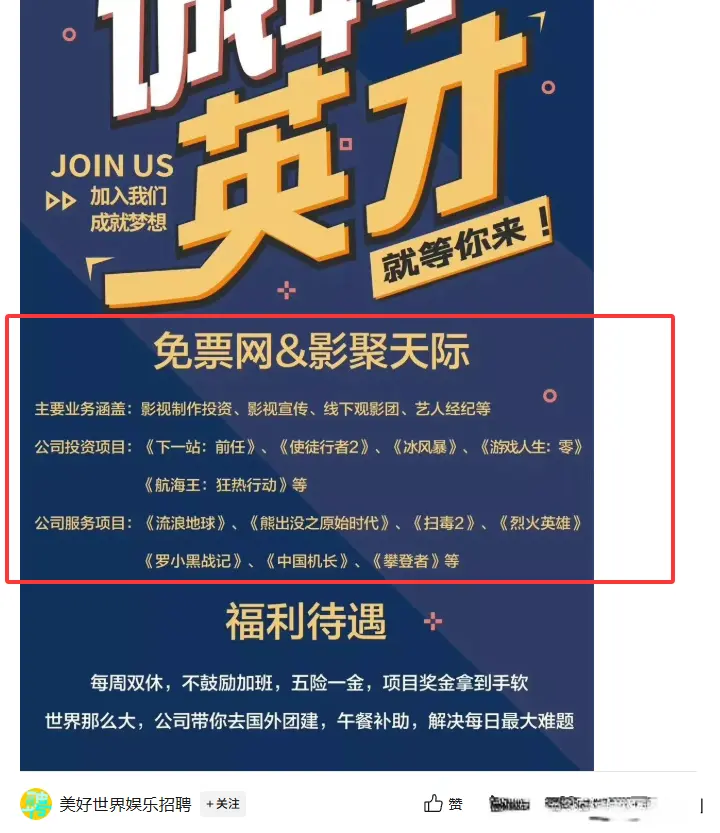 此前在2019年还有享票网和影聚天际的招聘了,简介上就写了一些相关的业务和代表作品了。