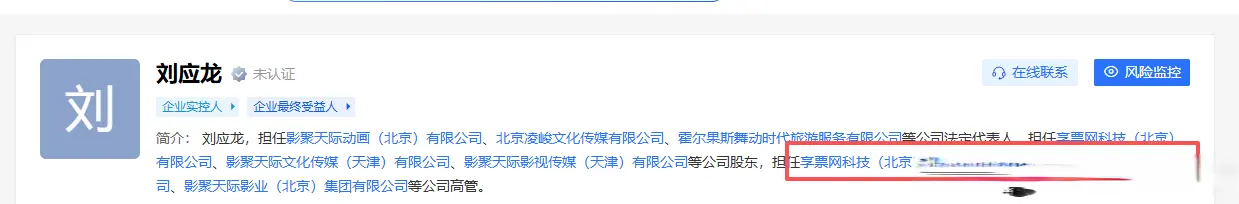 享票网影视制作(北京)有限公司其实和影聚天际影视制作(上海)有限公司有很强关联的,两家公司的法人都是屈婷婷,主要控股人都是屈婷婷和刘应龙了,