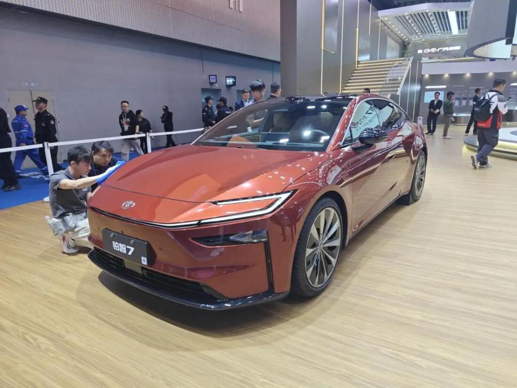 铂智 3X 大获成功的广汽丰田,在本届广州车展带来铂智另一款车型铂智 7,这款车号称“新能源版的凯美瑞 PLUS ”,全身挂满中国科技巨头的成果,包括华为鸿蒙座舱和华为提供的电机、小米“人车家”生态、Momenta 智驾方案等。